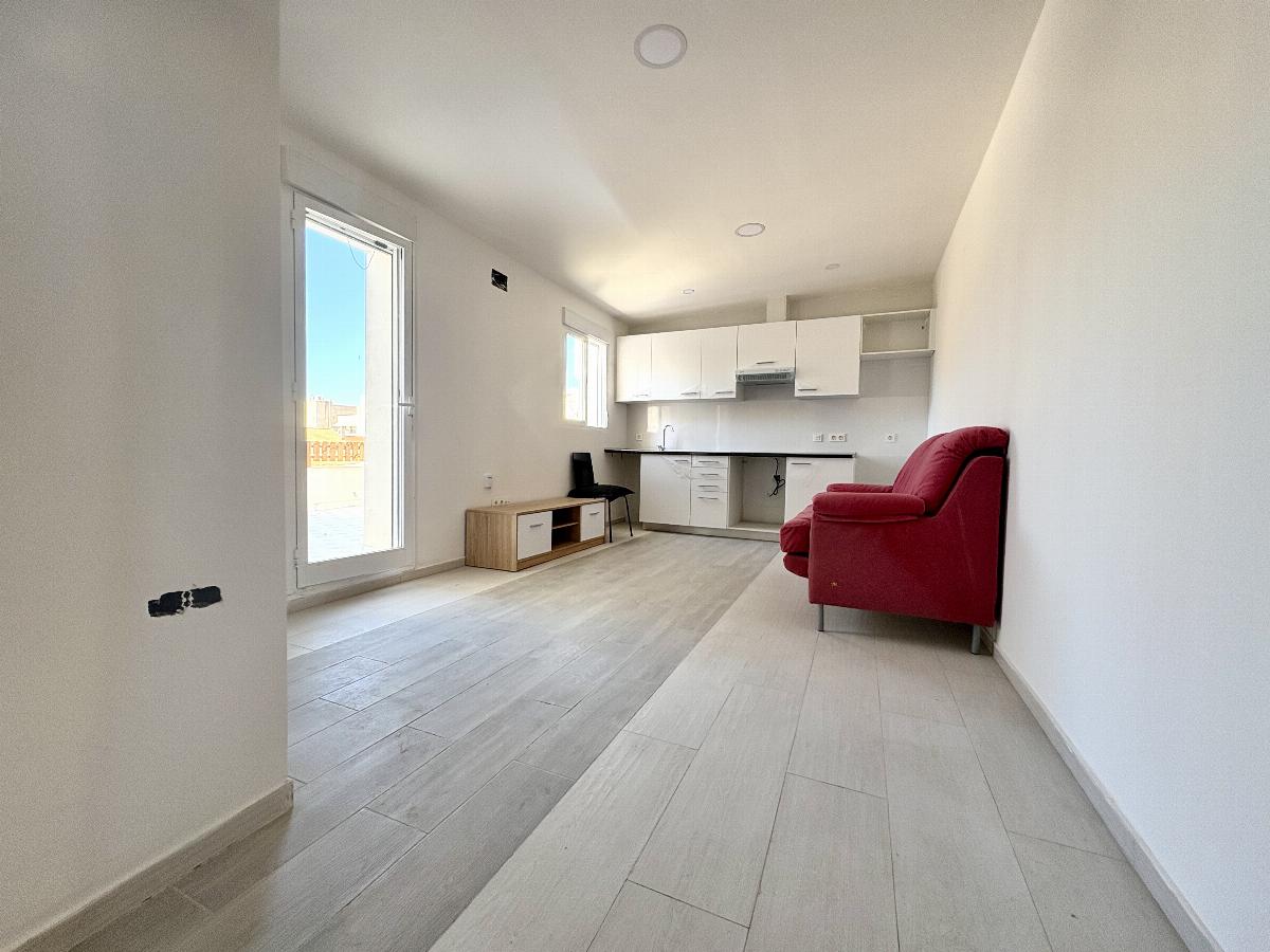 Al subir por las escaleras de acceso, se abre un salón con cocina americana, bañado por la luz natural y que conecta directamente con una terraza amplia y soleada, perfecta para disfrutar del clima mediterráneo.