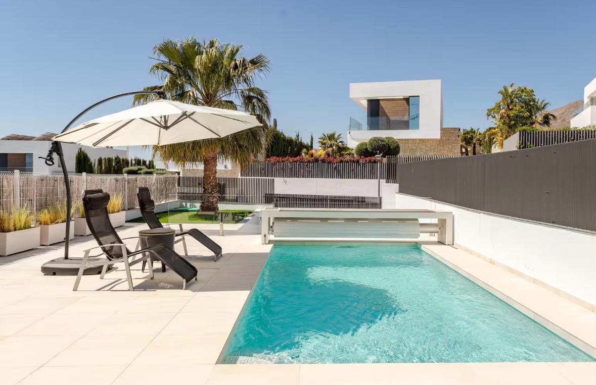 Chalet independiente de lujo en Finestrat-Sierra Cortina: vistas panorámicas y piscina privada, disponible el 1 de junio