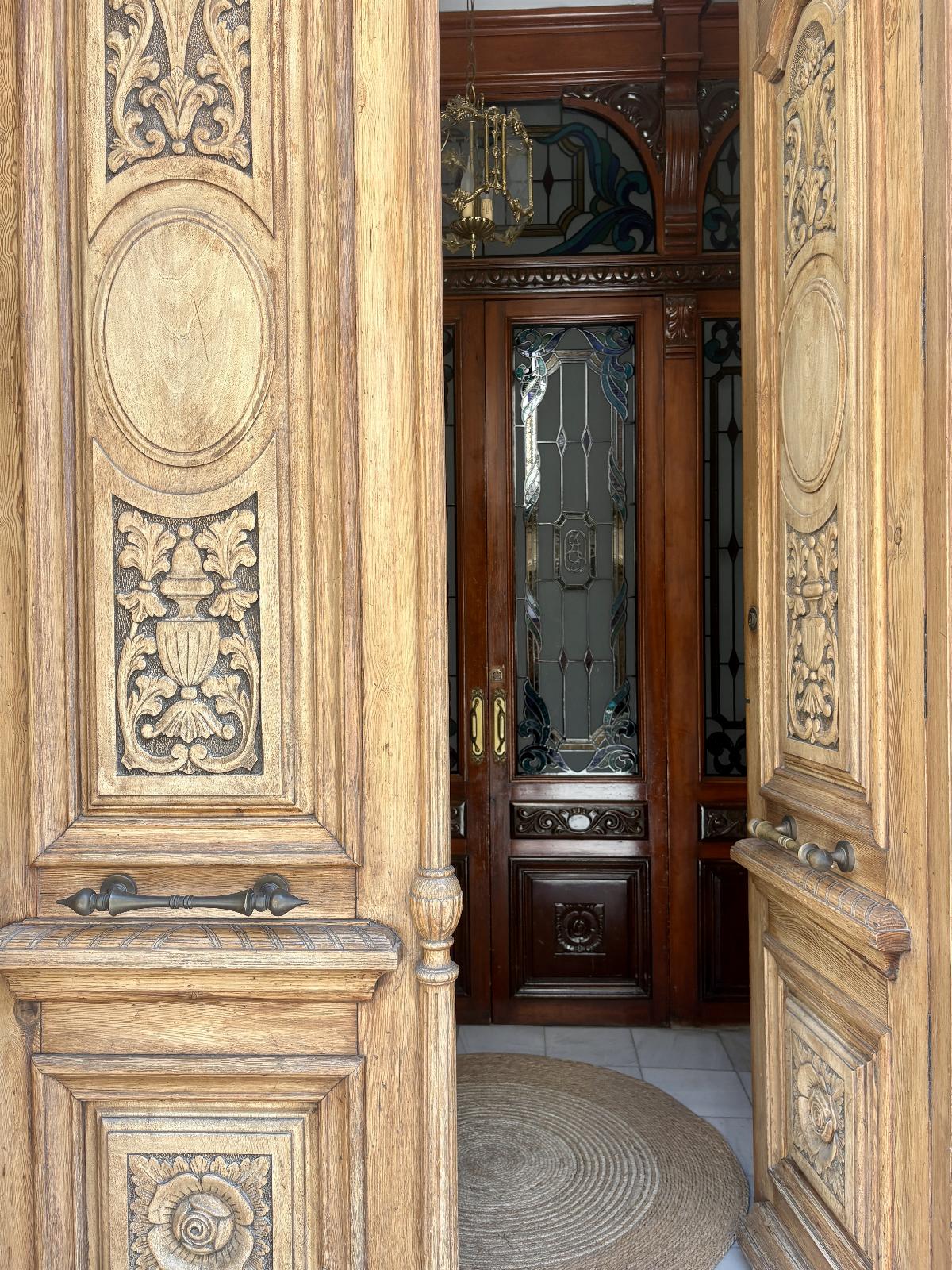 Entre sus detalles arquitectónicos destacan los suelos hidráulicos originales, puertas de pino de Canadá, escalinata de mármol con vidrieras y un imponente tragaluz, techos altos con molduras de época, barandillas y balcones en hierro fundido.