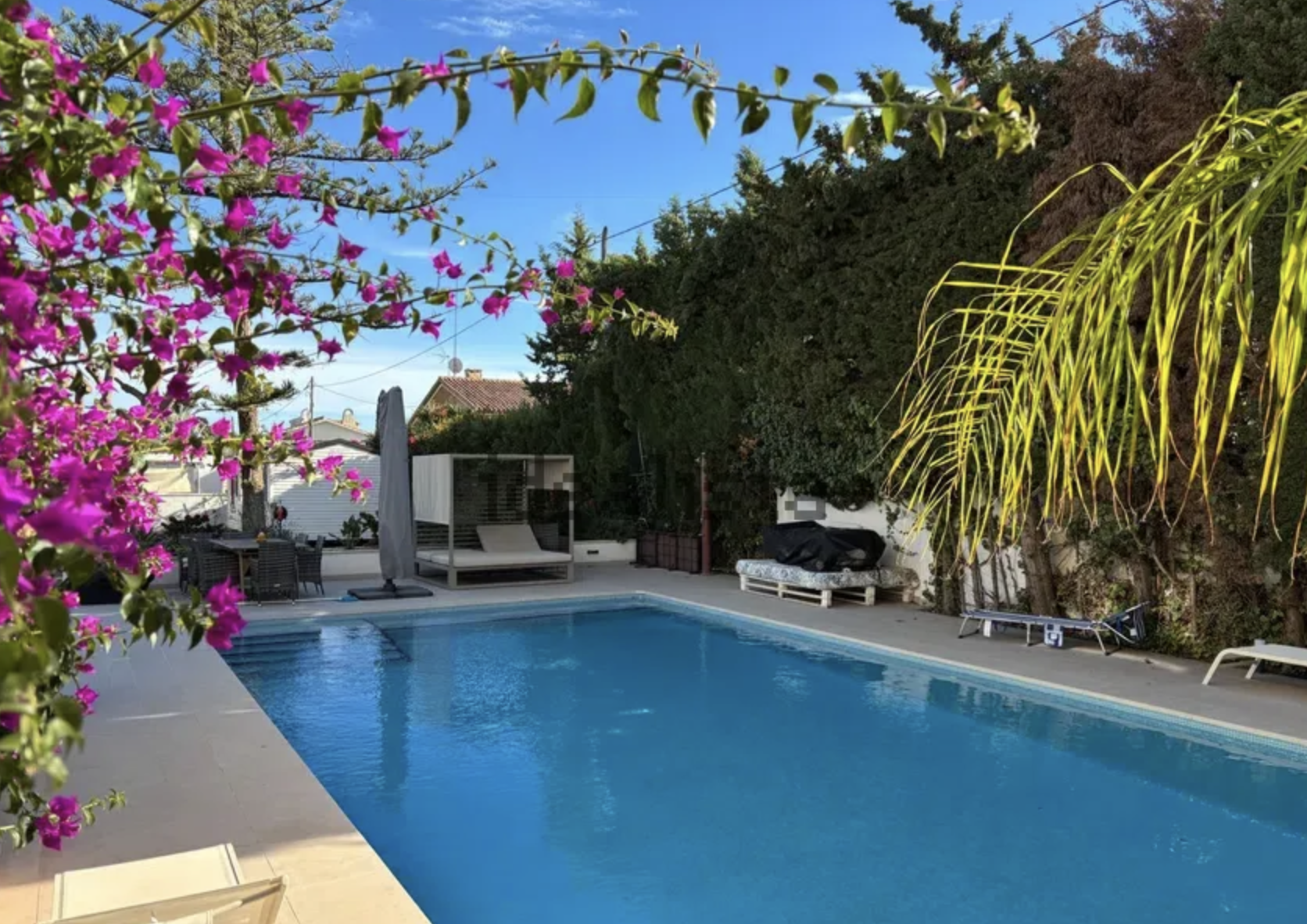 En el exterior, la propiedad ofrece un espectacular jardín privado con total privacidad, piscina de 6x12 metros de agua salada, zona chill-out, cocina de verano de alta gama ideal para reuniones, porche cubierto para disfrutar al aire libre y una casa de madera independiente perfecta como alojamiento de invitados, despacho o zona de ocio.